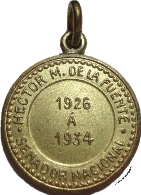 Anverso: SENADO DE LA NACION Reverso: HECTOR M. DE LA FUENTE / SENADO NACIONAL / 1926 / Á / 1934 Referencia: | |