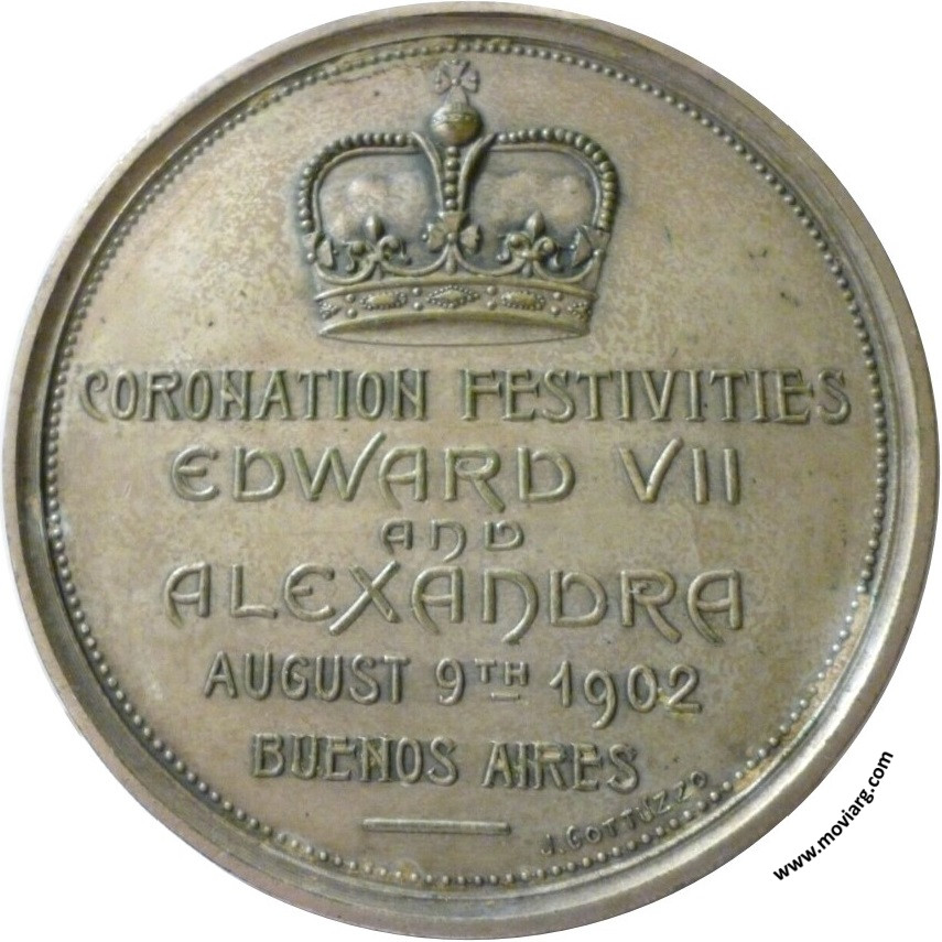 Anverso: Firma: LAVARELLO ESC. Reverso: CORONATION FESTIVITIES / EDWARD VII / AND / ALEXANDRA / AUGUST 9TH 1902 / BUENOS AIRES. Firma: J. GOTTUZZO Referencia: | |