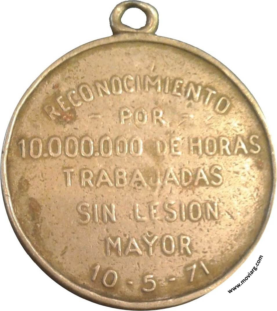 Anverso: DUCILO / FABRICAS BERAZATEGUI / [ JUAN O. CANET ] / SEGURIDAD Reverso: RECONOCIMIENTO / POR / 10.000.000 DE HORAS / TRABAJADAS / SIN LESION / MAYOR / 10 - 5 - 71 Referencia: | |