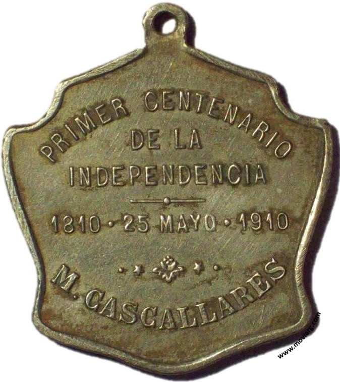 Anverso: 1810. Firma: C. Y AF. ROSSI Reverso: PRIMER CENTENARIO / DE LA / INDEPENDENCIA / 1810 · 25 MAYO · 1910 / M. CASCALLARES Referencia: | |