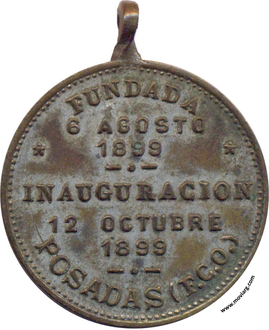 Anverso: ASOCIACION ESPAÑOLA DE SOCORROS MUTUOS Reverso: FUNDADA / 6 AGOSTO / 1899 / INAUGURACION / 12 OCTUBRE / 1899 / POSADAS ( F. C. O. ) Referencia: | |
