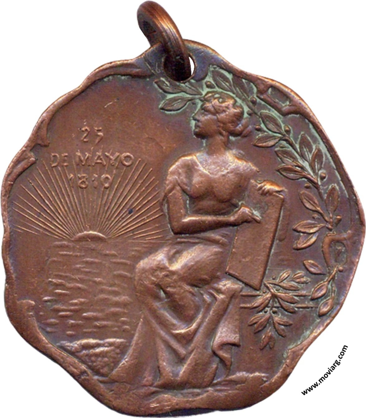 Anverso: 25 / DE MAYO / 1810 Reverso: LOS ESPAÑOLES DEL SALADILLO / A LA / NACION / ARGENTINA / EN SU / PRIMER CENTENARIO Referencia: | |