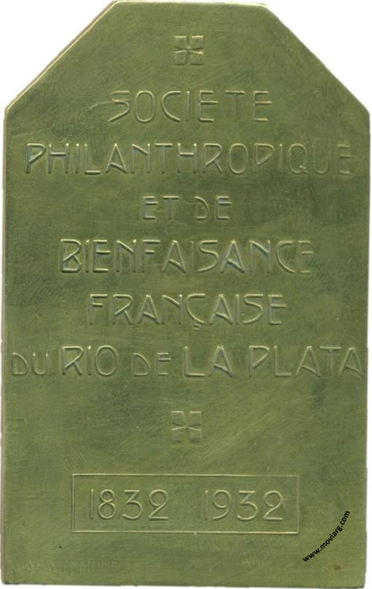 Anverso: Firma: J. SPRENGER Reverso: SOCIETE / PHILANTHROPIQUE / ET DE / BIENFAISANCE / FRANÇAISE / DU RIO DE LA PLATA / 1832 1932. Firma: CASA DE MONEDA Referencia: | |