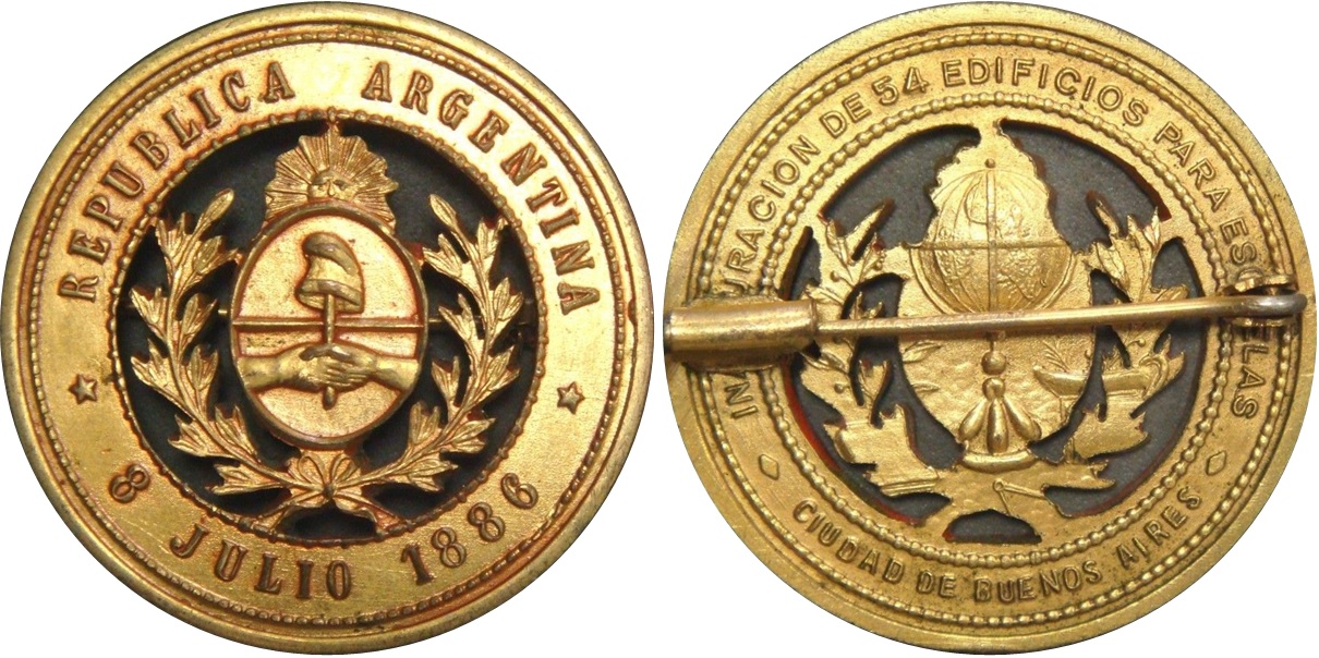 La última pieza sería la acuñada por la S.C. Argentina (presumiblemente la Sociedad Científica Argentina). En cuanto a la Exposición Italiana podría tratarse de la pieza grabada por Cravero Domenico (Torino), Código : UPRH