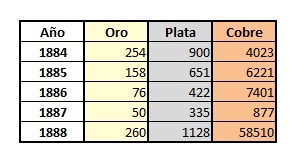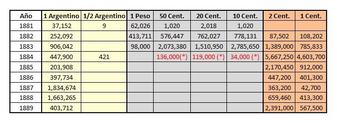 La tabla vista anteriormente detalla la acuñación del año 1888 pero hasta el 15 de Octubre.