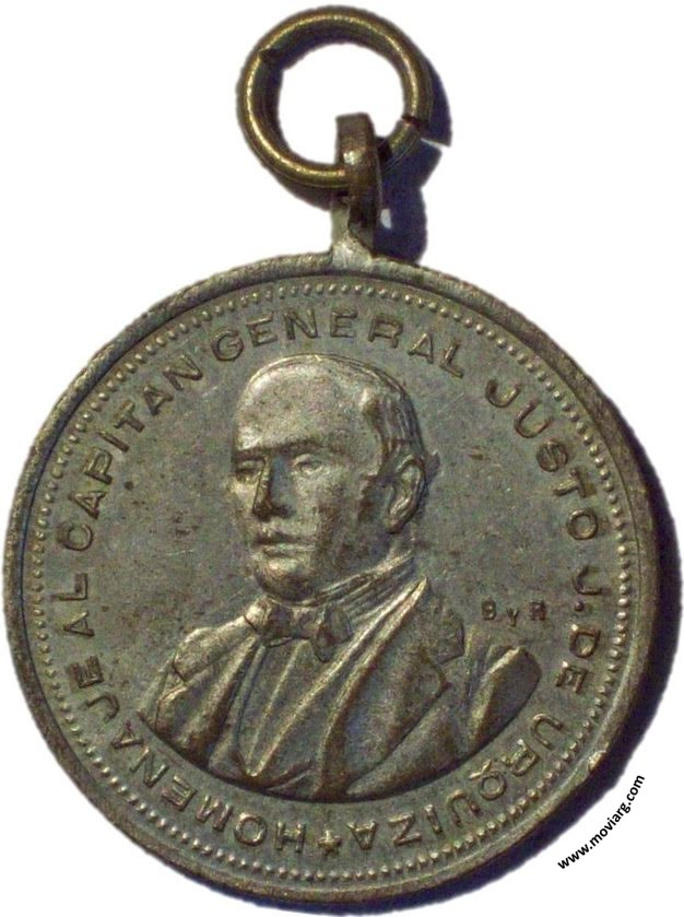 Anverso: HOMENAJE AL CAPITAL GENERAL JUSTO J. DE URQUIZA. Firma: B. Y R. Reverso: VELADA LITERARIA MUSICAL / 8 / DE JULIO 1901 / ROSARIO TALA / CASEROS 1852 / ORGANIZACION / NACIONAL / 1853 Referencia: | |