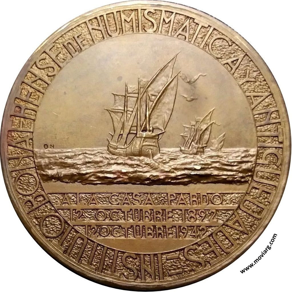 Anverso: JOSÉ PARDO ARAGUES / 19 - 3 - 1861 / 3 - 9 - 1923. Firma: OLIVIA NAVARRO Reverso: INSTITUTO BONAERENSE DE NUMISMATICA Y ANTIGÜEDADES / A LA CASA PARDO / 12 OCTUBRE 1892 / 12 OCTUBRE 1942. Firma: O.N. Referencia: | |