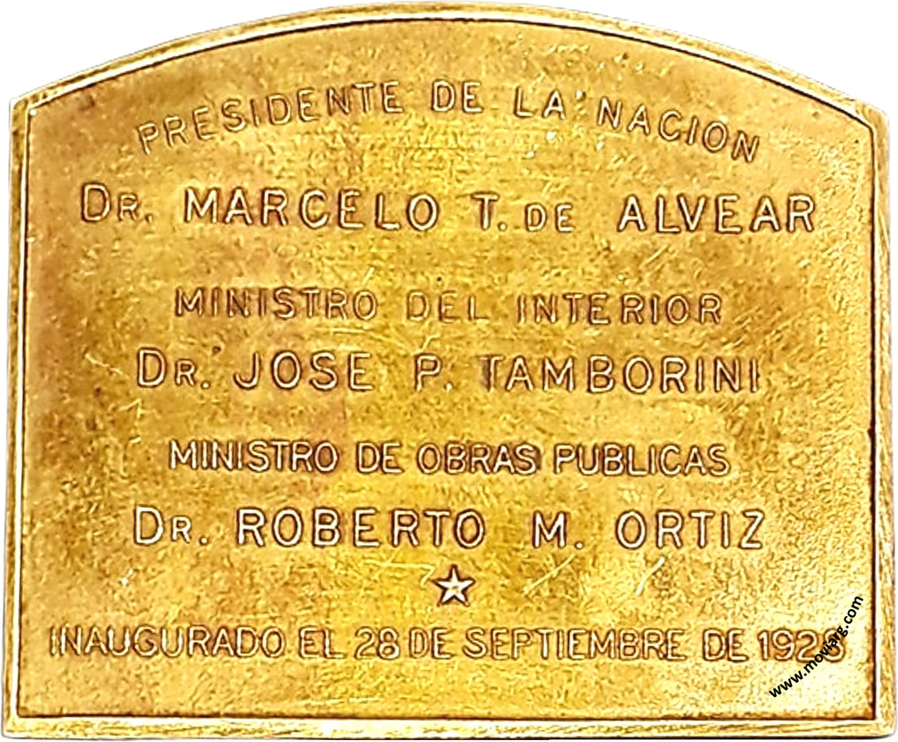 Anverso: CORREOS Y TELEGRAFOS. Firma: J. M. LUBARY Reverso: PRESIDENTE DE LA NACION / DR. MARCELO T. DE ALVEAR / MINISTRO DEL INTERIOR / DR. JOSE P. TAMBORINI / MINISTRO DE OBRAS PUBLICAS / DR. ROBERTO M. ORTIZ / INAUGURADO EL 28 DE SEPTIEMBRE DE 1928 Referencia: | |