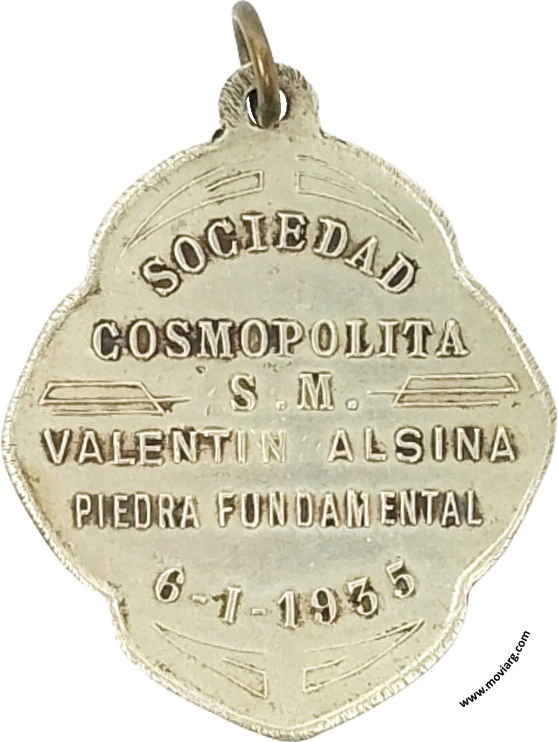 Anverso: Reverso: SOCIEDAD / COSMOPOLITA / S.M. / VALENTIN ALSINA / PIEDRA FUNDAMENTAL / 6 - I - 1935 Referencia: | |