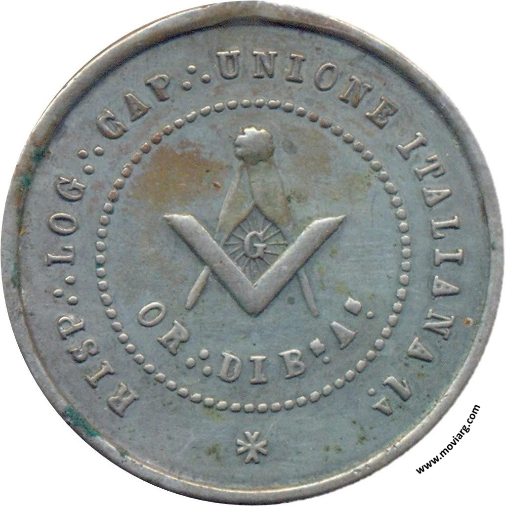 Anverso: RISP .·. LOG .·. CAP .·. UNIONE .·. ITALIANA 1A. / OR .·. DI BS. AS. Reverso: BATTESIMO MASS .·. 3 MAGGIO 1891 E .·. V .·. / [ FERNANDO I. ] / [ CASTIGLIONI ] Referencia: | |