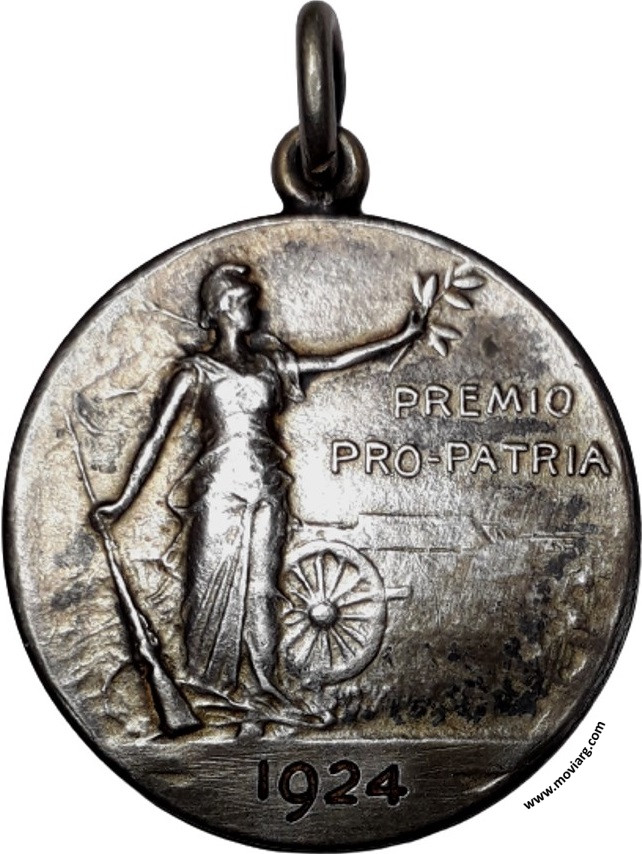 Colección MDS Anverso: PREMIO / PRO-PATRIA / [ 1924 ]Reverso: [ TRANS. ] / [ BAHIA BLANCA ] / [ FELIPE MOYA ] Canto: Liso. PLATA Referencia: | |