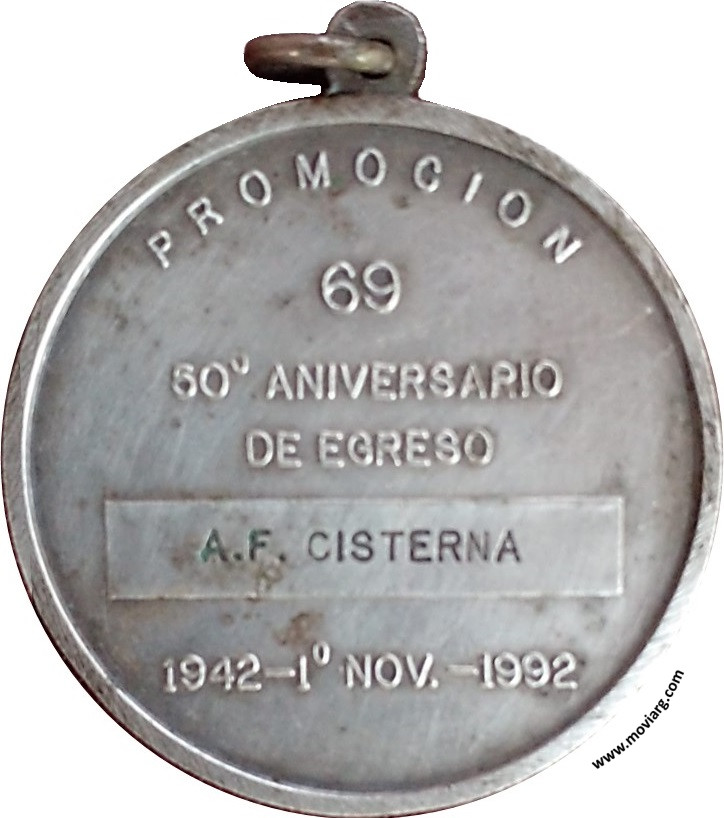 Numismática Glew Antonio Fernandez Anverso: Campo: ESCUELA / NAVAL / MILITAR / REPUBLICA ARGENTINA / 1872Reverso: PROMOCION / 69 / 50° ANIVERSARIO / DE EGRESO / [ A. F. CISTERNA ] / 1942 - 1° NOV. - 1992 Referencia: | |