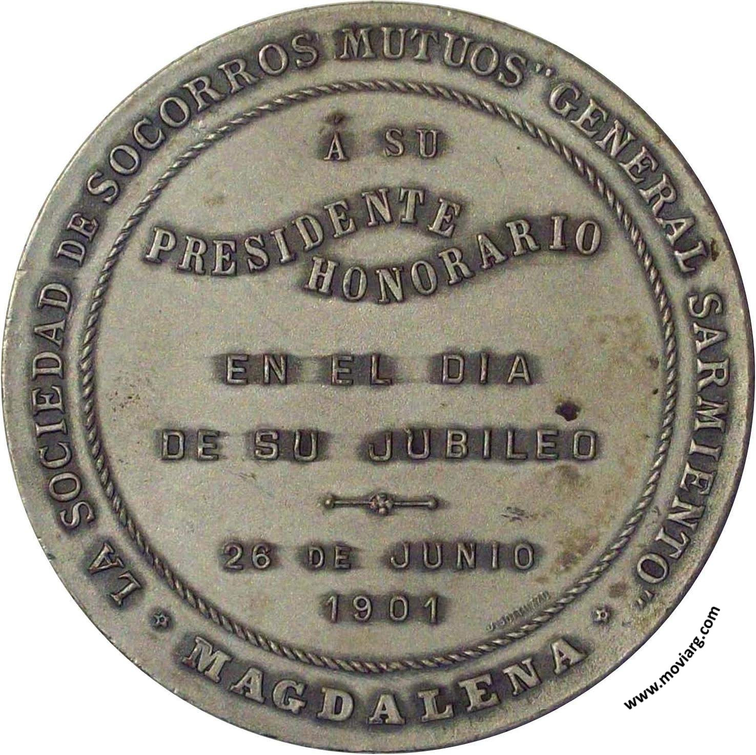 Anverso: Reverso: LA SOCIEDAD DE SOCORROS MUTUOS "GENERAL SARMIENTO" / MAGDALENA. A SU / PRESIDENTE / HONORARIO / EN EL DIA / DE SU JUBILEO / 26 DE JUNIO / 1901. Firma: J. GOTTUZZO Referencia: ROSA-29 (M80) | |