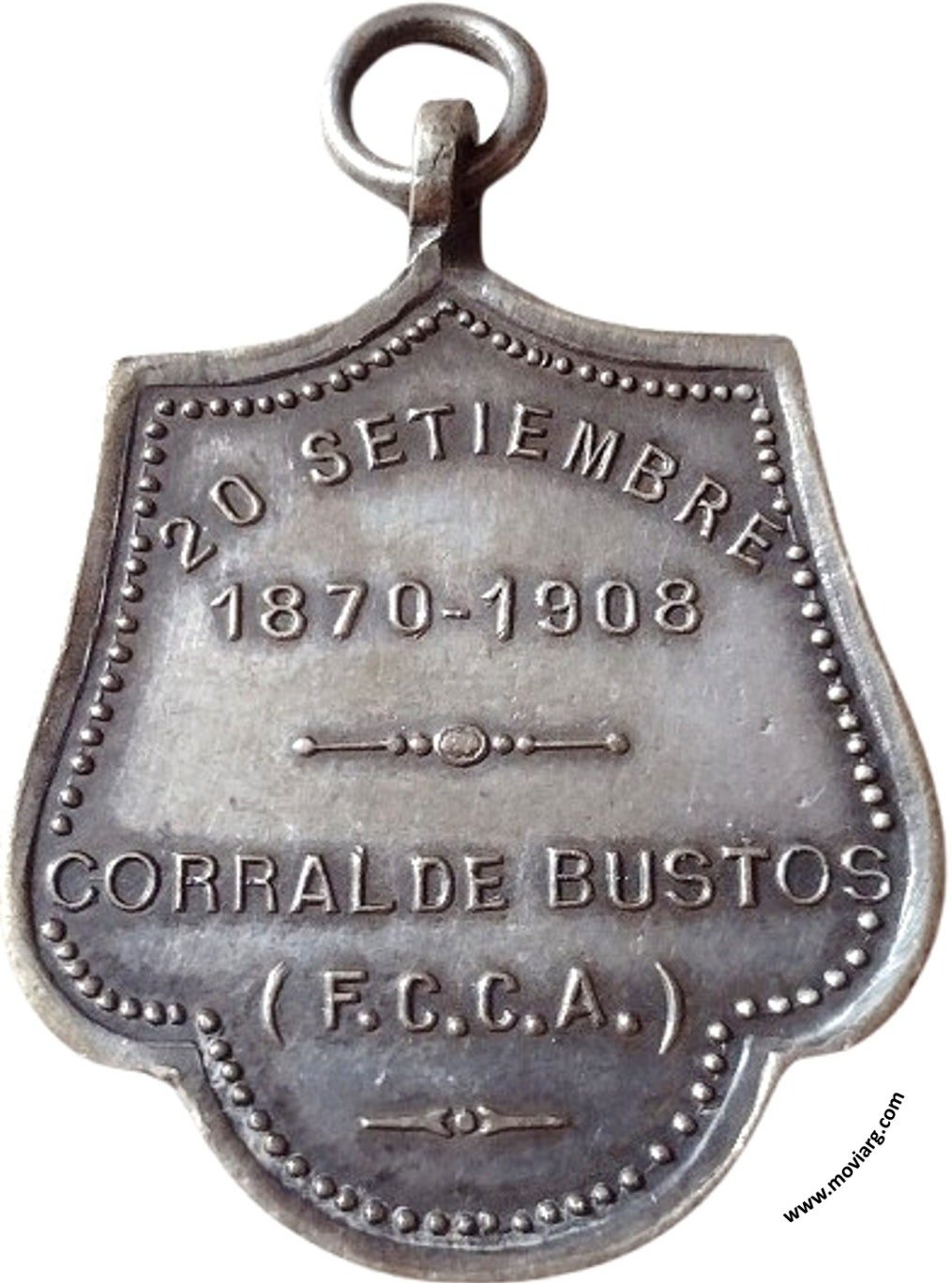 Anverso: Firma: GOTTUZZO Reverso: 20 SETIEMBRE / 1870 - 1908 / CORRAL DE BUSTOS / ( F.C.C.A. ) Referencia: | |