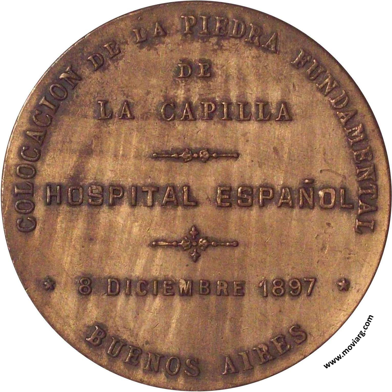 Anverso: DON ELIAS ROMERO Y DOÑA PETRONILA G. DE SARALEGUI / PADRINOS Reverso: COLOCACION DE LA PIEDRA FUNDAMENTAL / DE / LA CAPILLA / HOSPITAL ESPAÑOL / 8 DICIEMBRE 1897 / BUENOS AIRES Referencia: | |