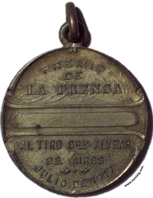 Anverso: VERITAS / JUSTITIA / HUMANITAS. Firma: CONSTANTE ROSSI Reverso: PREMIO / DE / " LA PRENSA " / AL TIRO GRAL. ALVEAR / BS. AIRES / JULIO 1917 Referencia: | |