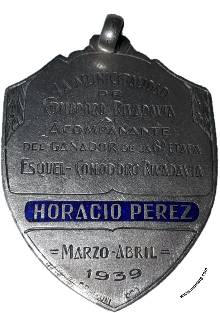 Anverso: GRAN PREMIO INTERNACIONAL DEL SUD / [ 1939 ]. Firma: (???) Reverso: [ LA MUNICIPALIDAD ] / [ DE ] / [ COMODORO RIVADAVIA ] / [ AL ] / [ ACOMPAÑANTE ] / [ DEL GANADOR DE LA 8A. ETAPA ] / [ ESQUEL - COMODORO RIVADAVIA ] / [ HORACIO PEREZ ] / [ = MARZO - ABRIL = ] / [ 1939 ]. Firma: [ C. BELLUNI (???) ] / [ 900 ] Referencia: | |