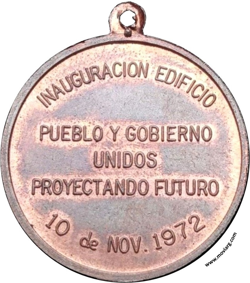 Anverso: COLEGIO NACIONAL Y COMERCIAL ANEXO PEHUAJO Reverso: INAUGURACION EDIFICIO / PUEBLO Y GOBIERNO / UNIDOS / PROYECTANDO FUTURO / 10 DE NOV. 1972 Referencia: | |