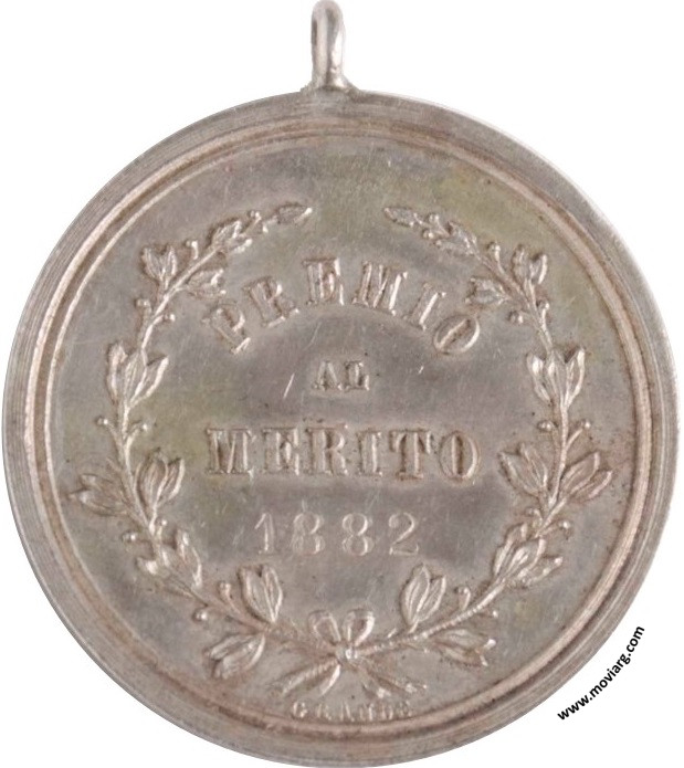 | Año: (1882) Premio al Mérito y Aplicación Metal: Plata - Rotación: 12hrs Grabador: Rosario Grande | |