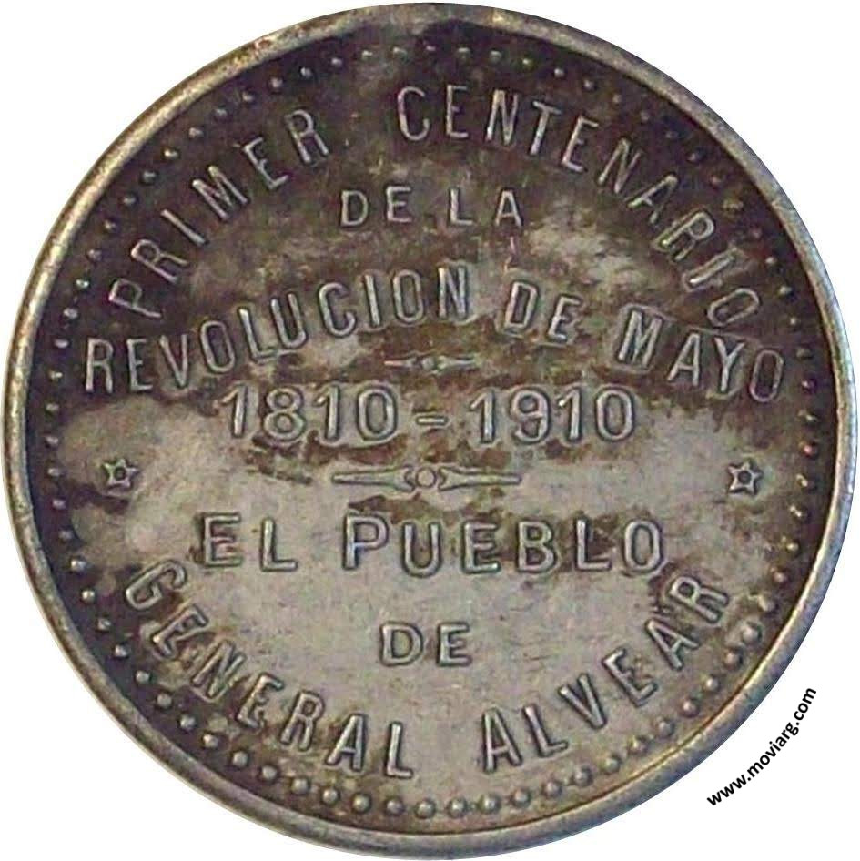 Anverso: Reverso: PRIMER CENTENARIO / DE LA / REVOLUCION DE MAYO / 1810 - 1910 / EL PUEBLO / DE / GENERAL ALVEAR Referencia: | |
