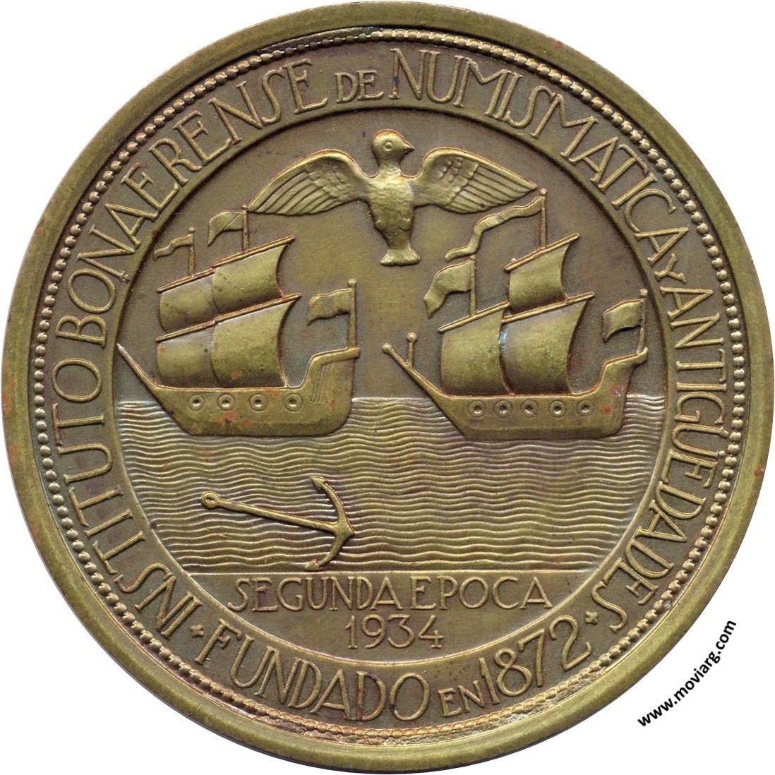 Anverso: HUMBERTO F. / BURZIO / ESCRIBIO LA HISTORIA NUMISMATICA HISPANOAMERICANA / 1902 / 1980. Firma: JUAN CARLOS / FERRARO Reverso: INSTITUTO BONAERENSE DE NUMISMATICA Y ANTIGÜEDADES / FUNDADO EN 1872 / SEGUNDA EPOCA / 1934 Referencia: | |