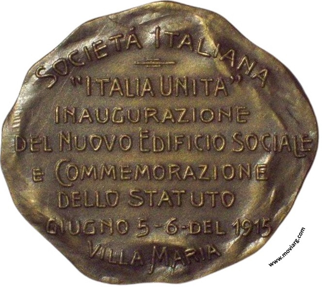 Anverso: Firma: GOTTUZZO Y CIA. Reverso: SOCIETÁ ITALIANA / " ITALIA UNITA " / INAUGURAZIONE / DEL NUOVO EDIFICIO SOCIALE / E COMMEMORAZIONE / DELLO STATUTO / GIUGNO 5-6-DEL 1915 / VILLA MARIA Referencia: | |