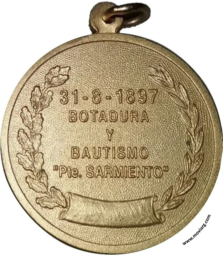 Anverso: BUQUE ESCUELA A.R.A. " PRESIDENTE SARMIENTO " / CENTENARIO Reverso: 31 - 8 - 1897 / BOTADURA / Y / BAUTISMO / " PTE. SARMIENTO " Referencia: | |