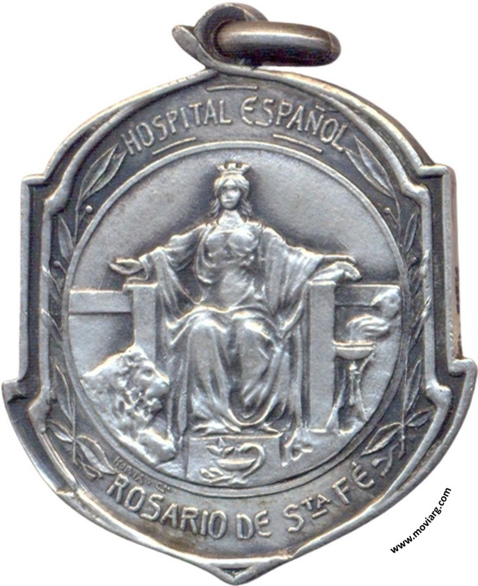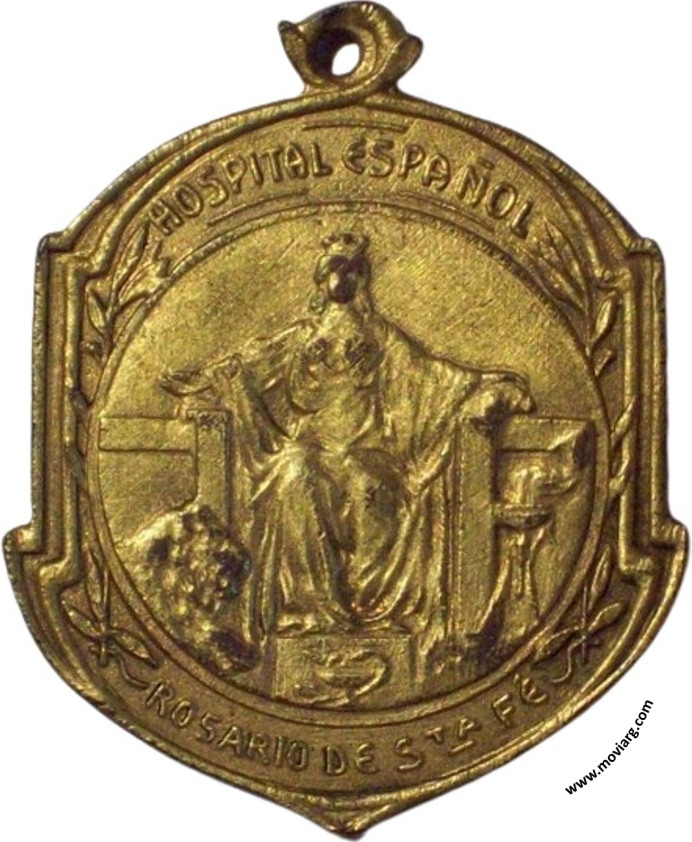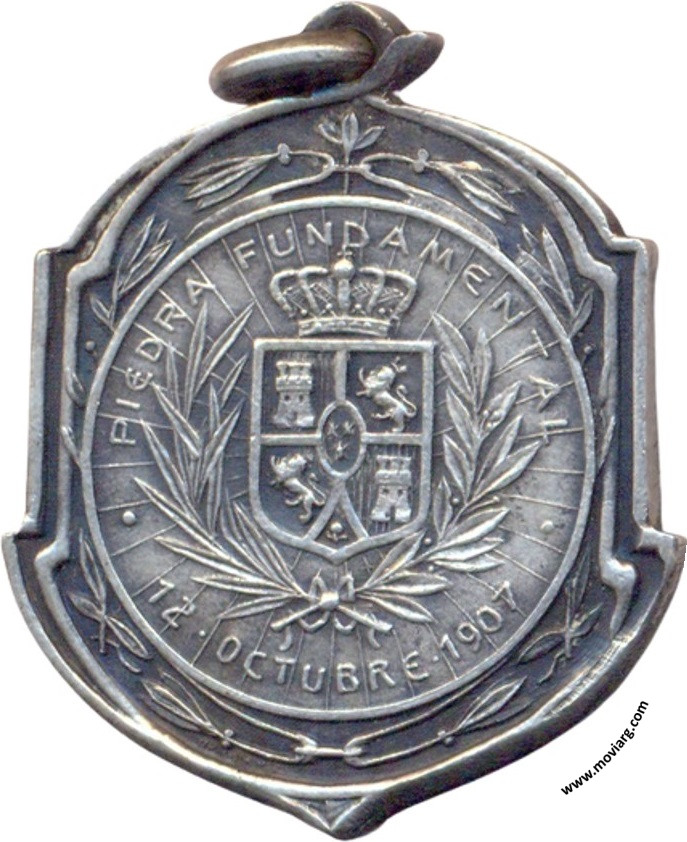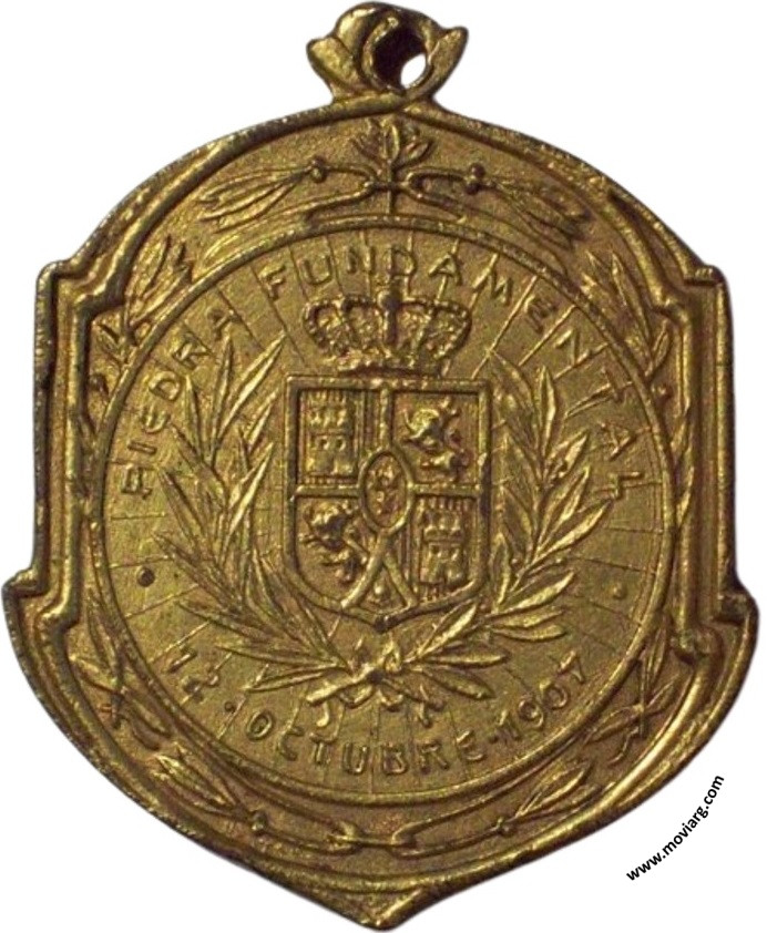 Anverso: HOSPITAL ESPAÑOL / ROSARIO DE STA. FÉ Reverso: PIEDRA FUNDAMENTAL / 12 · OCTUBRE · 1907. Firma: HORTA Y CIA. Referencia: | |