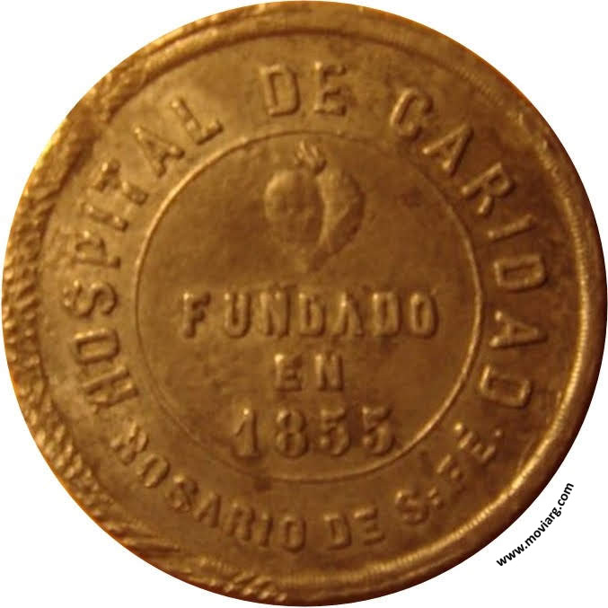Anverso: HOSPITAL DE CARIDAD / FUNDADO / EN / 1855 / ROSARIO DE S. FÉ Reverso: INAUGN. DEL SALON SANTA CATALINA / 4 / ABRIL / 1886. Firma: CACCIA Referencia: FERRARI-57 (SC) | |