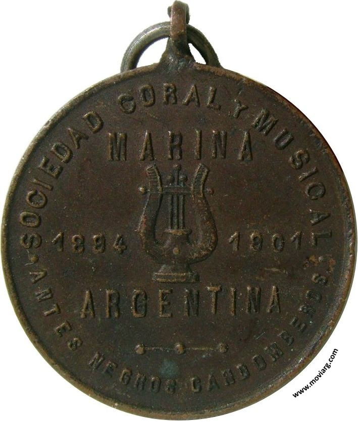 Anverso: PRIMERA VELADA / 10 DE NOVIEMBRE 1901 Reverso: SOCIEDAD CORAL Y MUSICAL / MARINA / 1894 / 1901 / ARGENTINA / ANTES NEGROS CANDOMBEROS Referencia: | |