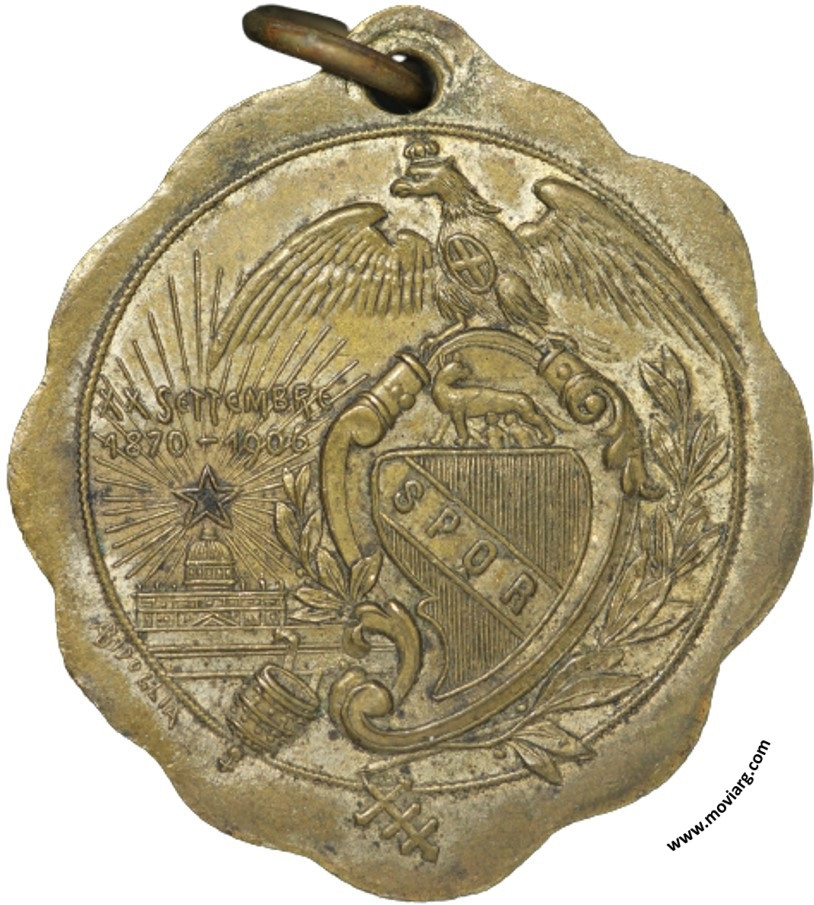 Anverso: XX SETTEMBRE / 1870 - 1906. Firma: SPQR. Firma: A. BIDOGLIA Reverso: XX / SETTEMBRE / 1906 / B. LARROUDÉ Referencia: | |