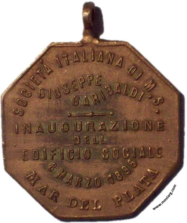 Colección MDS Anverso:Reverso: SOCIETÁ ITALIANA DI M.S. / GIUSEPPE / GARIBALDI / INAUGURAZIONE / DELL / EDIFICIO SOCIALE / 8 MARZO 1896 / MAR DEL PLATA Referencia: | |