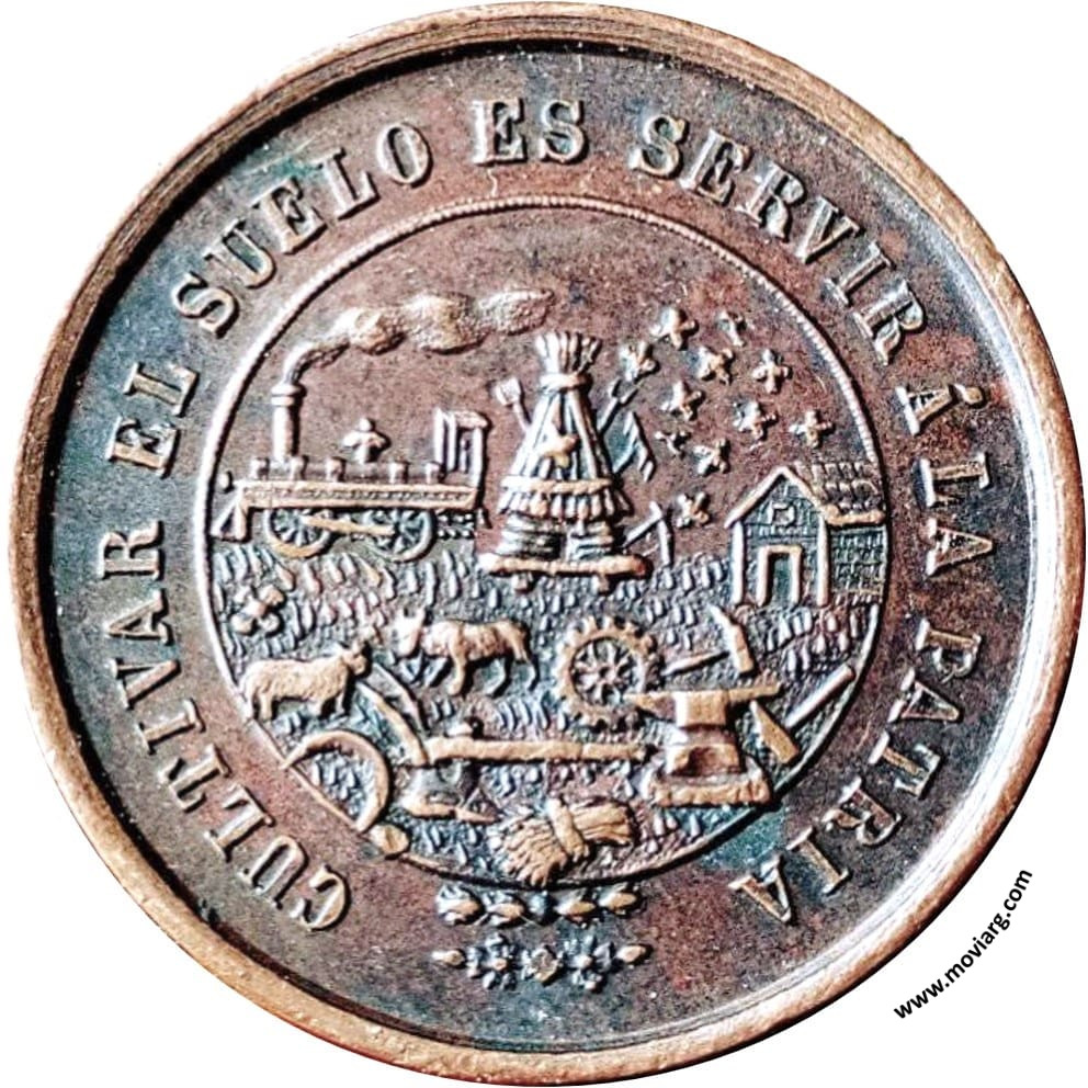 Anverso: CULTIVAR EL SUELO ES SERVIR Á LA PATRIA Reverso: SOCIEDAD RURAL É INDUSTRIAL / PREMIO / 8A. EXPOSICION / 1899 / BRAGADO Referencia: | |