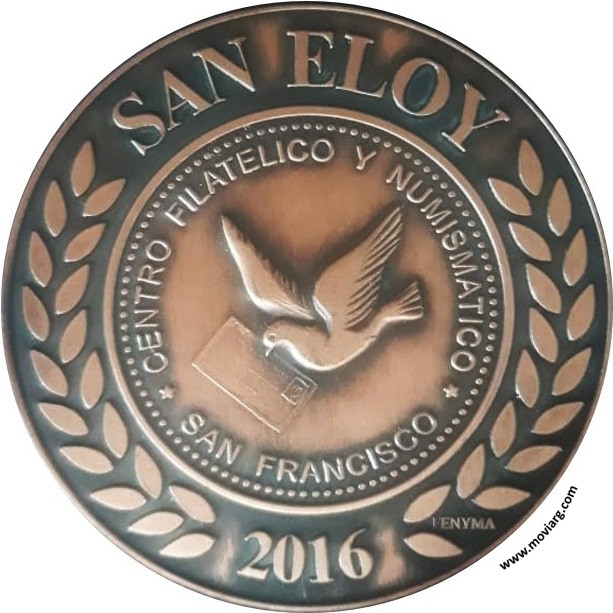 Colección HV Anverso: BICENTENARIO DE LA INDEPENDENCIA DE LA REPUBLICA ARGENTINA / 200 / AÑOS / 9 DE JULIO / 1816 - 2016Reverso: SAN ELOY / 2016 / CENTRO FILATELICO Y NUMISMATICO / SAN FRANCISCO. Exergo: FENYMA Referencia: | |