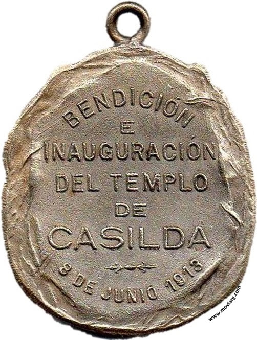 Anverso: SAN PEDRO APÓSTOL. Firma: C. Y AF. ROSSI Reverso: BENDICIÓN / E / INAUGURACIÓN / DEL TEMPLO / DE / CASILDA / 8 DE JUNIO 1913 Referencia: | |