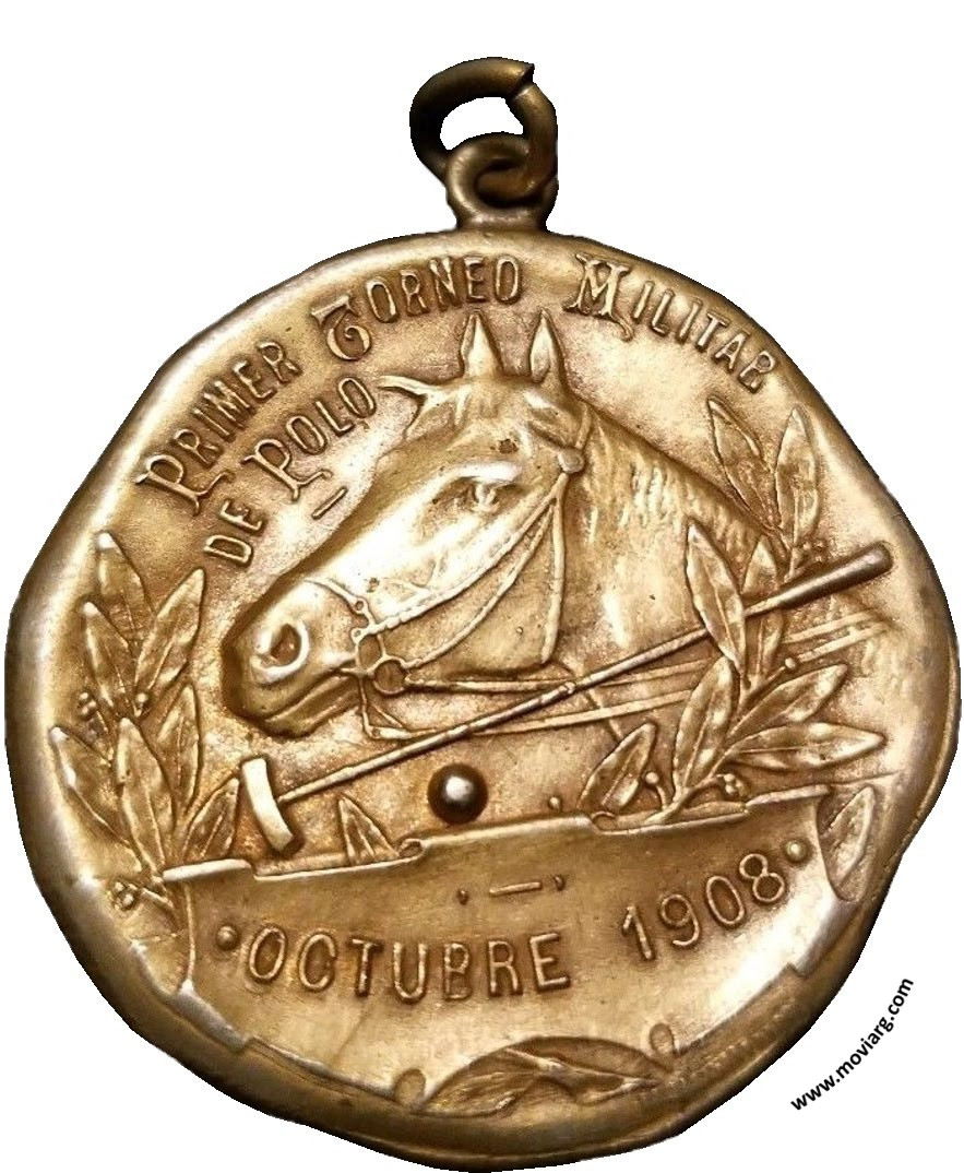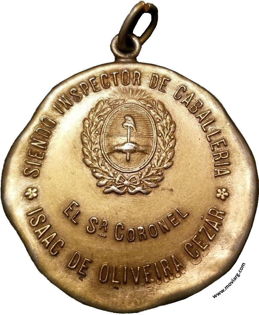 Anverso: PRIMER TORNEO MILITAR / DE POLO / OCTUBRE 1908. Firma: BELLAGAMBA Y ROSSI Reverso: SIENDO INSPECTOR DE CABALLERIA / EL SR. CORONEL / ISAAC DE OLIVEIRA CEZÁR Referencia: | |