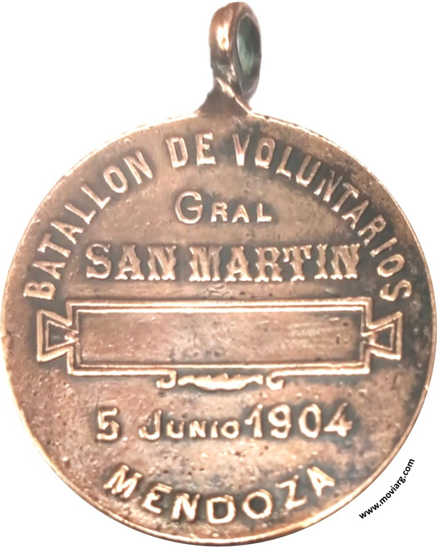 Anverso: Reverso: BATALLON DE VOLUNTARIOS / GRAL. / SAN MARTIN / 5 JUNIO 1904 / MENDOZA Referencia: | |