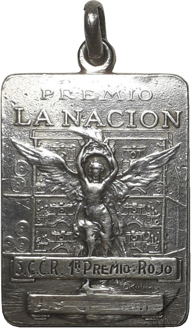 Anverso: LA NACION / CON DESTACADO BRILLO SE CELEBRARA HOY EL 123 / ANIVERSARIO DE LA JURA DE LA INDEPENDENCIA. Firma: GOTTUZZO Y PIANA Reverso: PREMIO / LA NACION / [ S. C. C. R. 1R. PREMIO · ROJO ]. Firma: RUBINO Canto: Liso. 900 Referencia: | |