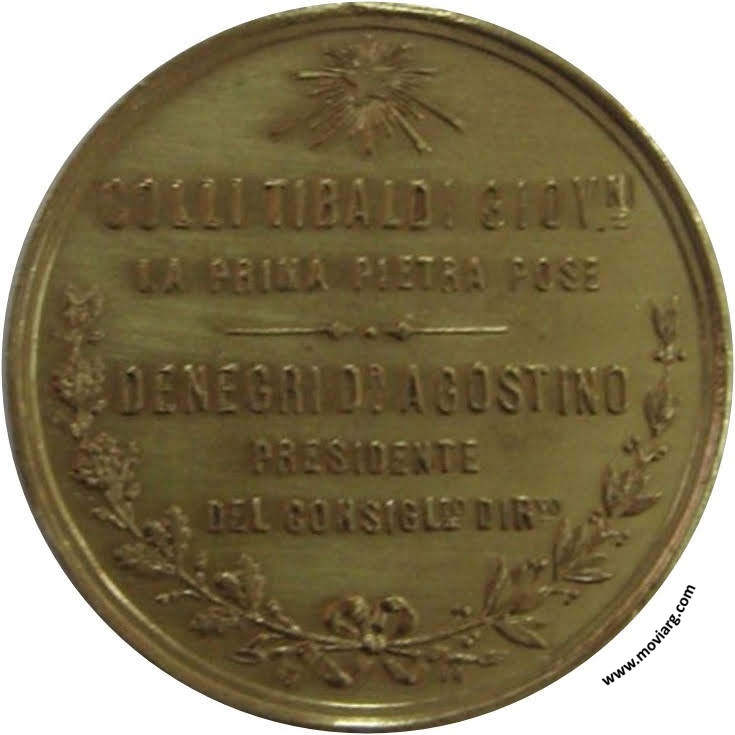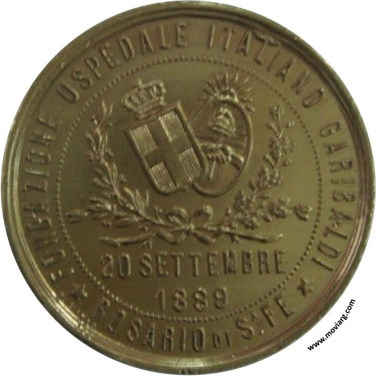 Anverso: FUNDAZIONE OSPEDALE ITALIANO GARIBALDI / ROSARIO DI SA/ FE / 20 SETTEMBRE / 1889. Firma: M. VANZO Reverso: COLLI TIBALDI GIOVN. / LA PRIMA PIETRA POSE / DENEGRI DR. AGOSTINO / PRESIDENTE / DEL CONSIGLRO. DIRNO. Referencia: | |