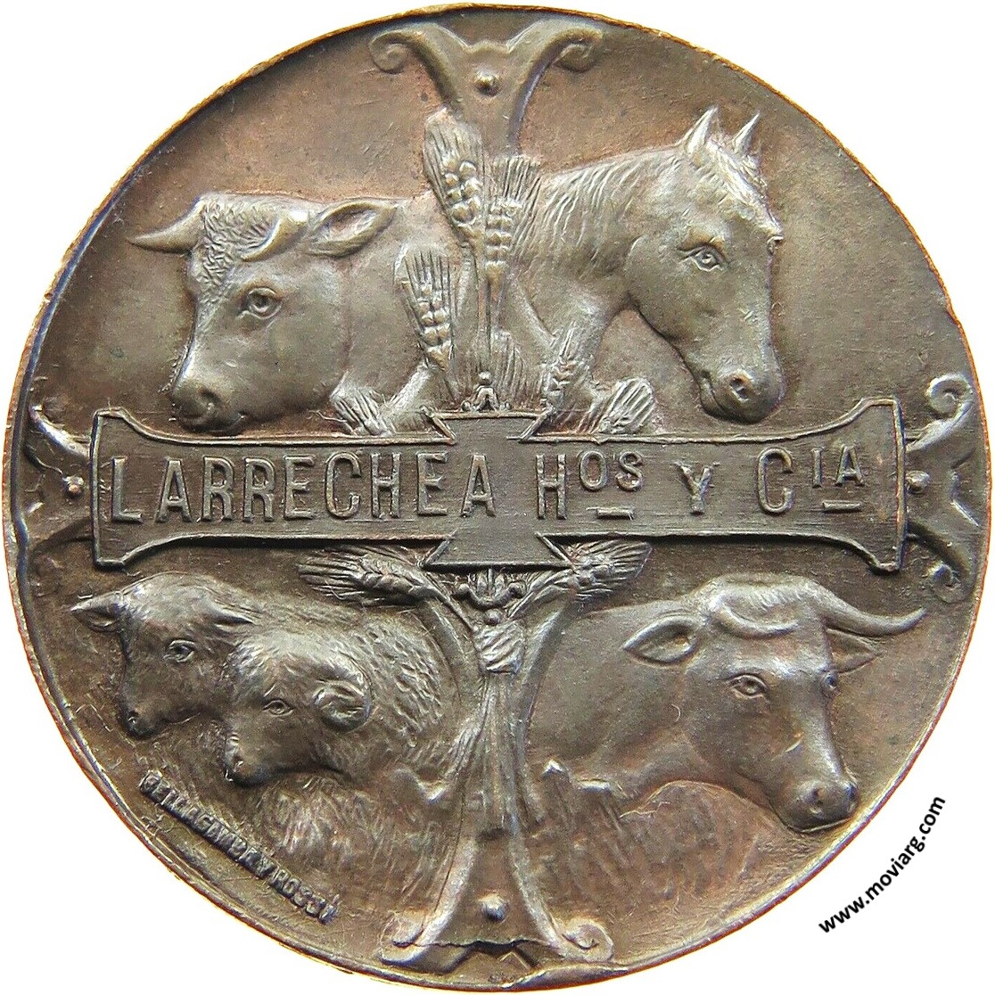 Anverso: LARRECHEA HNOS Y CIA. Firma: BELLAGAMBA Y ROSSI Reverso: EXPOSICION AUSPICIADA POR LA / SOCIEDAD RURAL DE RIO IV / RIO IV / 8 DICIEMBRE 1901 Referencia: | |