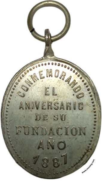 Anverso: SOCIEDAD ESPAÑOLA DE SOCORROS MUTUOS / CAMPANA. Firma: PIEDAD / 734 Reverso: CONMEMORANDO / EL / ANIVERSARIO / DE SU / FUNDACION / AÑO / 1887 Referencia: | |