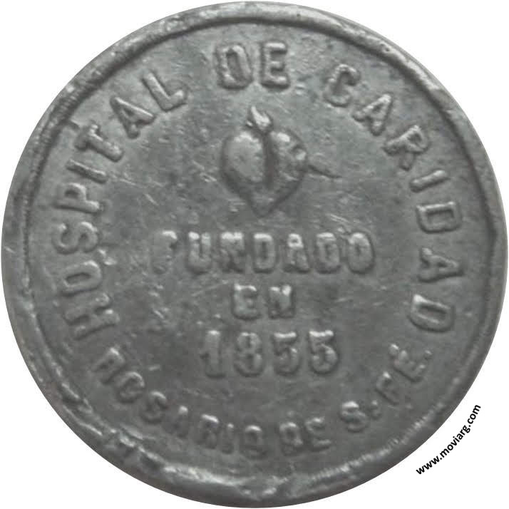 Anverso: HOSPITAL DE CARIDAD / FUNDADO / EN / 1855 / ROSARIO DE S. FÉ Reverso: INAUGN. DEL SALON SAN CAMILO DE LELIS. / 22 / MARZO / 1885. Firma: CACCIA Referencia: FERRARI-55 (SC) | |