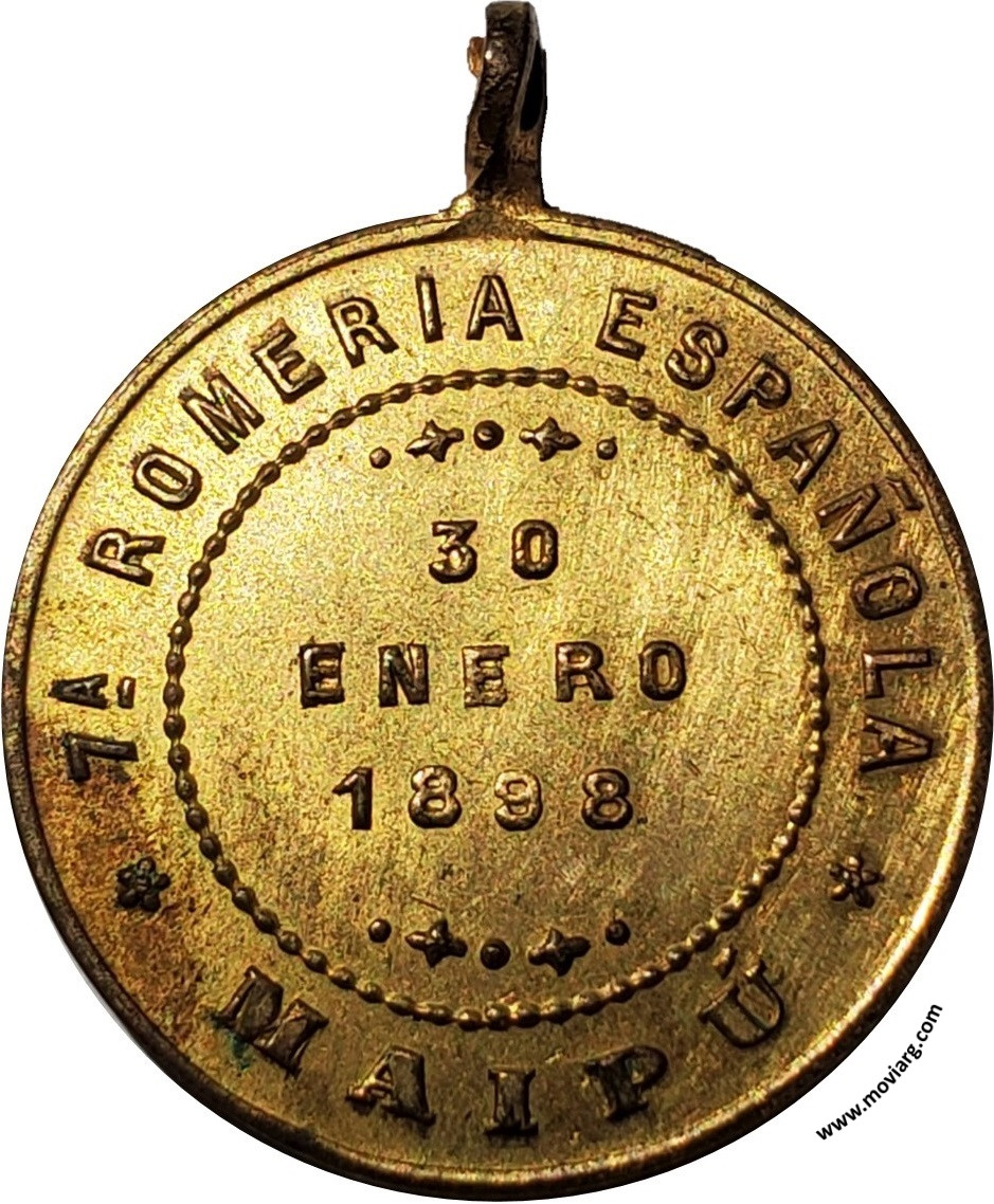 Anverso: SOCIEDAD ESPAÑOLA DE SOCORROS MUTUOS Reverso: 7A. ROMERIA ESPAÑOLA / MAIPÚ / 30 / ENERO / 1898 Referencia: | |