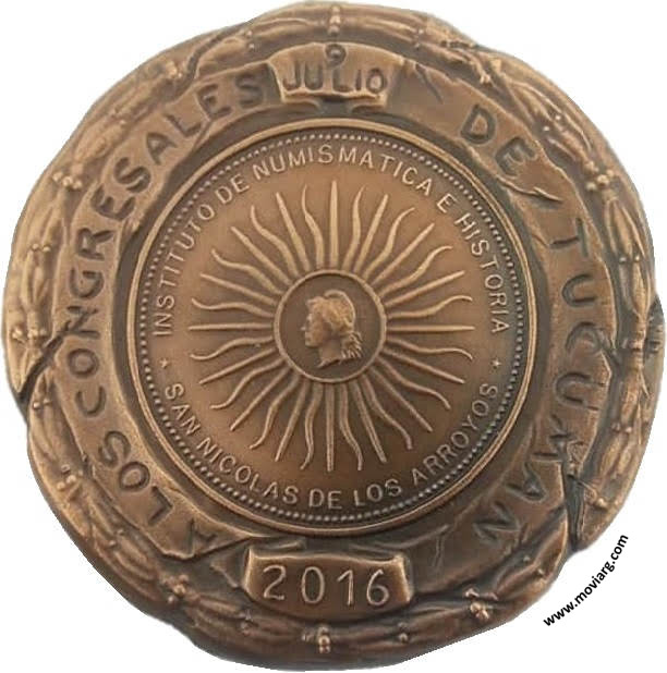 Anverso: DECLARACION Y JURA DE LA INDEPENDENCIA / 1816 Reverso: A LOS CONGRESALES / DE TUCUMAN / 9 / JULIO / 2016 / INSTITUTO DE NUMISMATICA E HISTORIA / SAN NICOLAS DE LOS ARROYOS Referencia: | |