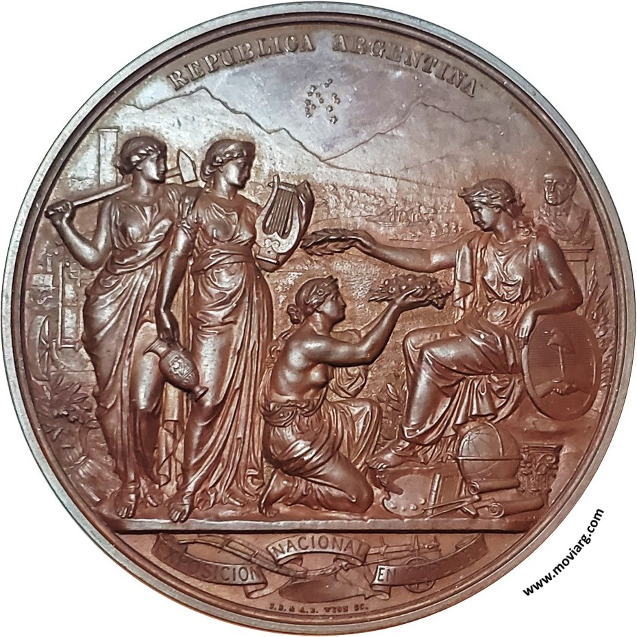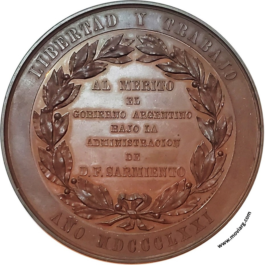 Anverso: REPUBLICA ARGENTINA / EXPOSICION NACIONAL EN CORDOBA. Firma: J.S. & A.B. WYON SC. Reverso: LIBERTAD Y TRABAJO / AÑO MDCCCLXXI / AL MERITO / EL / GOBIERNO ARGENTINO / BAJO LA / ADMINISTRACION / D.F. SARMIENTO. Firma: J.S. & A.B. WYON SC. Canto: Liso Referencia: | |