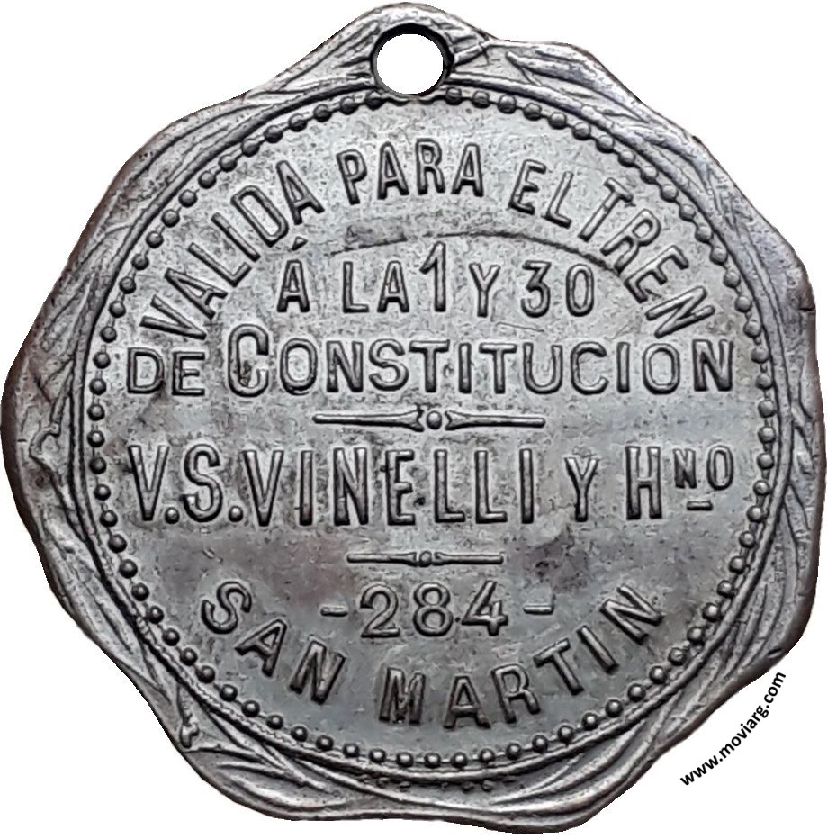 Anverso: PARQUE HUERGO / EN / TEMPERLEY / GRAN REMATE / 506 LOTES / EL / 1° NOVIEMBRE / 1908 Reverso: VALIDA PARA EL TREN / Á LA 1 Y 30 / DE CONSTITUCION / V. S. VINELLI Y HNO. / - 284 - / SAN MARTIN Referencia: | |