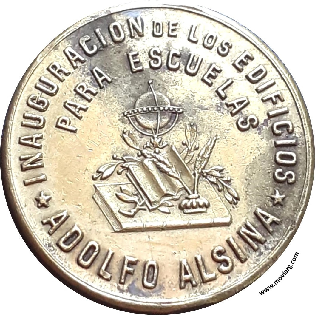 Anverso: PROVINCIA DE BS. AIRES / 19 DE AGOSTO 1887 Reverso: INAUGURACION DE LOS EDIFICIOS PARA ESCUELAS / ADOLFO ALSINA Referencia: ROSA-/112 | |