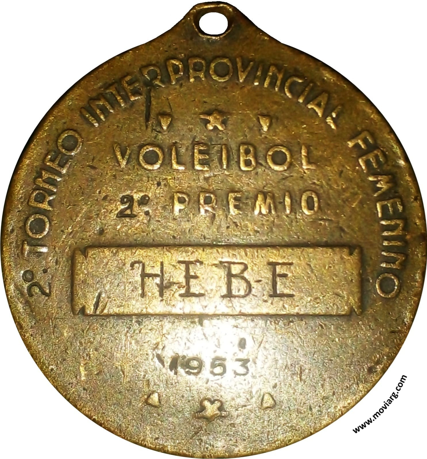 Anverso: CLUB DE REGATAS / SANTA FE. Campo: C. / R. / S. / F. Firma: O. GALLO / ARGENTINA Reverso: [ 2° ] TORNEO INTERPROVINCIAL FEMENINO / VOLEIBOL / [ 2° ] PREMIO / [ HEBE ] / [ 1953 ] Referencia: | |