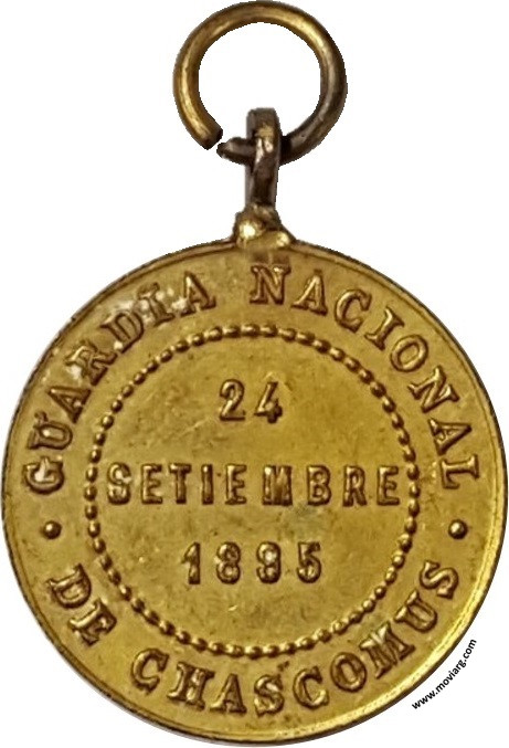 Anverso: BENDICION Y ENTREGA DE LA BANDERA Reverso: GUARDIA NACIONAL / DE CHASCOMUS / 24 / SETIEMBRE / 1895 Referencia: | |