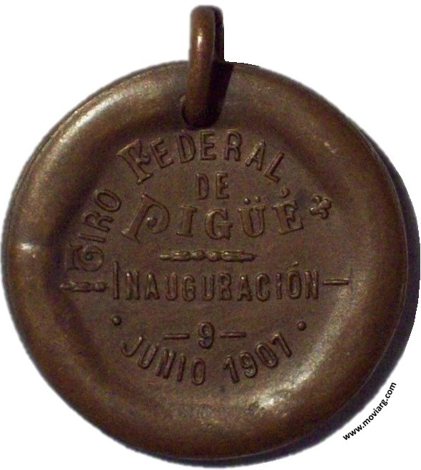 Anverso: Firma: BELLAGAMBA Y ROSSI Reverso: TIRO FEDERAL / DE / PIGÜÉ / INAUGURACIÓN / 9 / JUNIO 1907 Referencia: | |